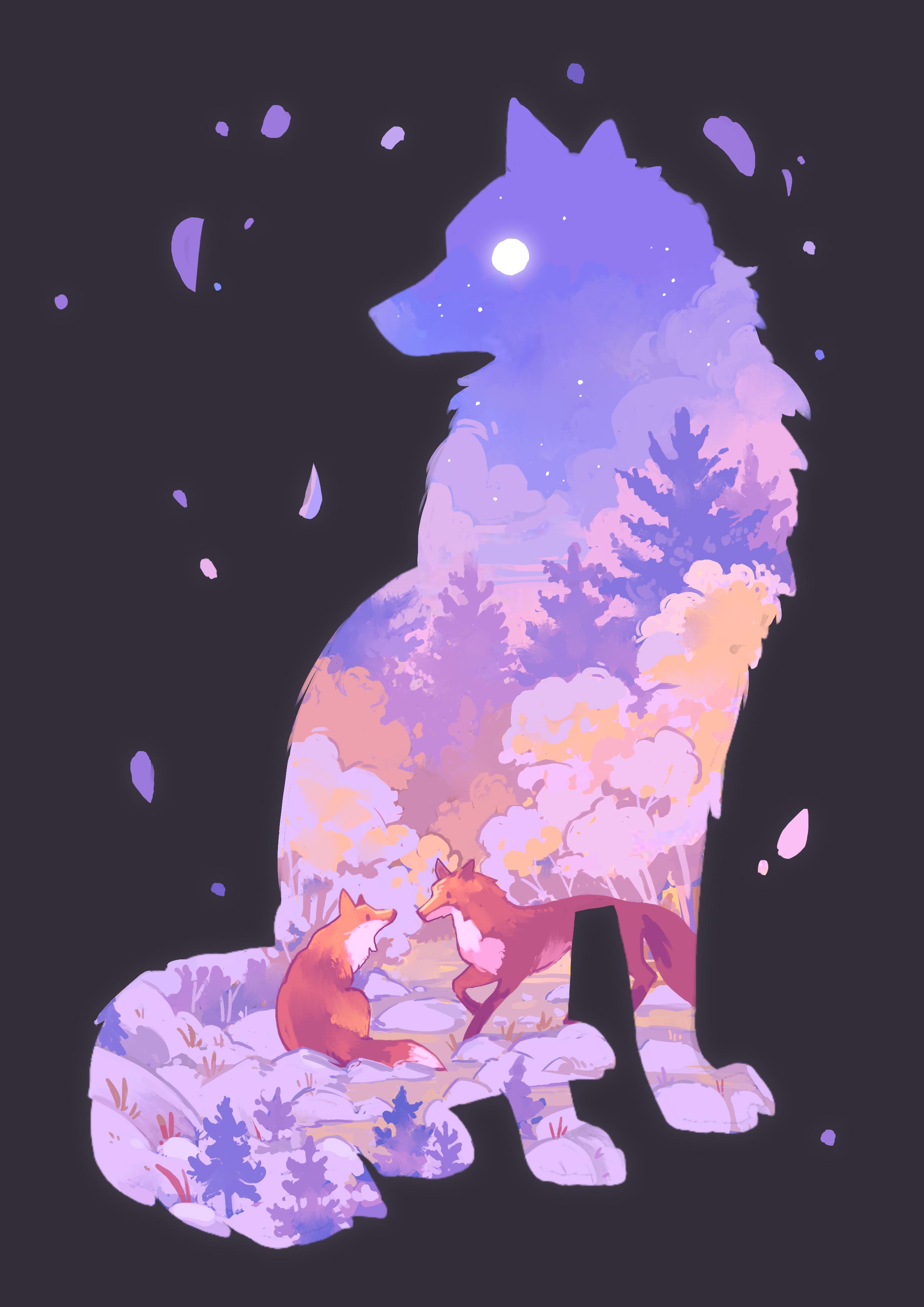 Animal Silhouette - Fox (black background)
